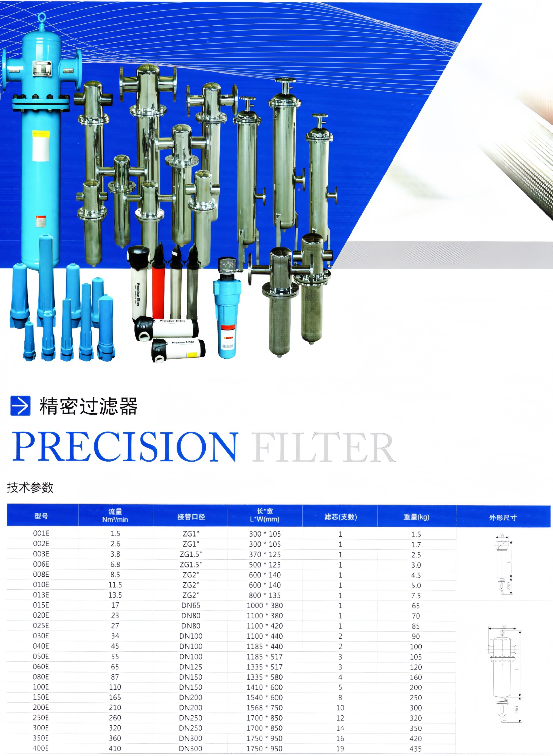 适用于聚结细小的水汽和油雾;可滤除小至0.01微米的凝聚物(0.01ppmw/w较大残留油分含量)